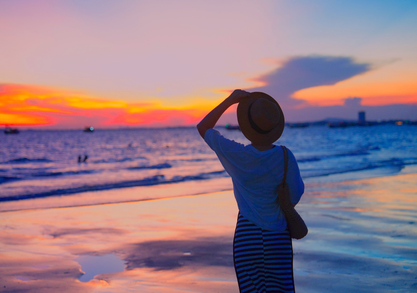 Hoàng hôn Long Hải, món quà tuyệt vời của thiên nhiên được ban tặng cho vùng đất này và cho cả Palace Long Hai Resort nữa, vẫn không vì thế mà bớt đẹp, bớt thơ. Khi ánh mặt trời nhạt dần, thay vào đó là lớp áo cam đậm quyến rũ rồi đột nhiên trở nên mê hoặc bởi sự xuất hiện của ánh tím hồng. Một chút lãng mạn, một chút rực rỡ, một chút sôi động, một chút bình yên và muôn phần nên thơ.